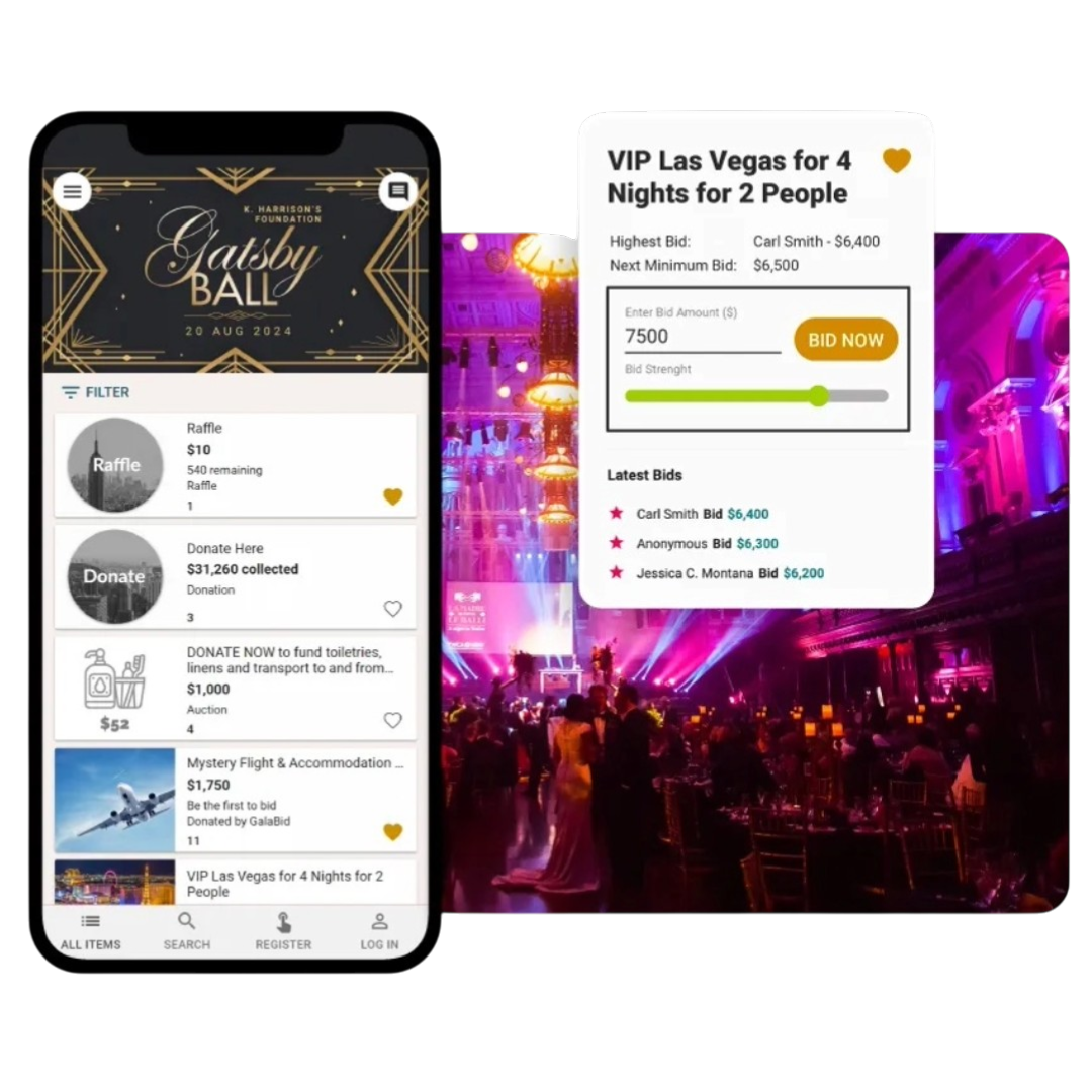 Guests browse and bid from their phones/mobile devices with real-time updates that keep competition high.